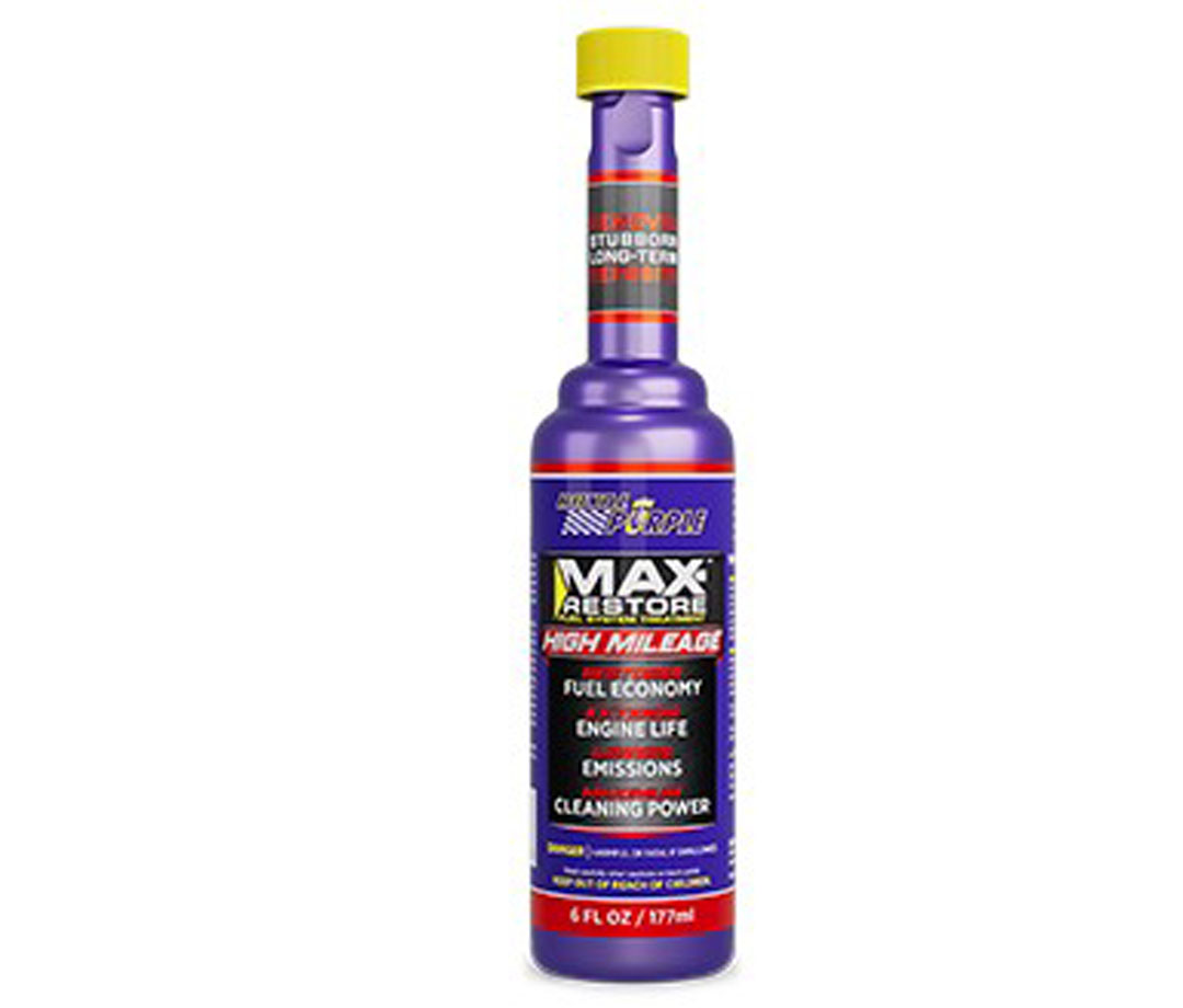 Το Max-Restore high mileage της Royal Purple, είναι ένα καθαριστικό με υψηλή περιεκτικότητα και υψηλής απόδοσης, που είναι ειδικά διαμορφωμένο για να λύνει τυπικά προβλήματα που εμφανίζονται στο σύστημα ψεκασμού καυσίμου σε οχήματα με πολλά χιλιόμετρα